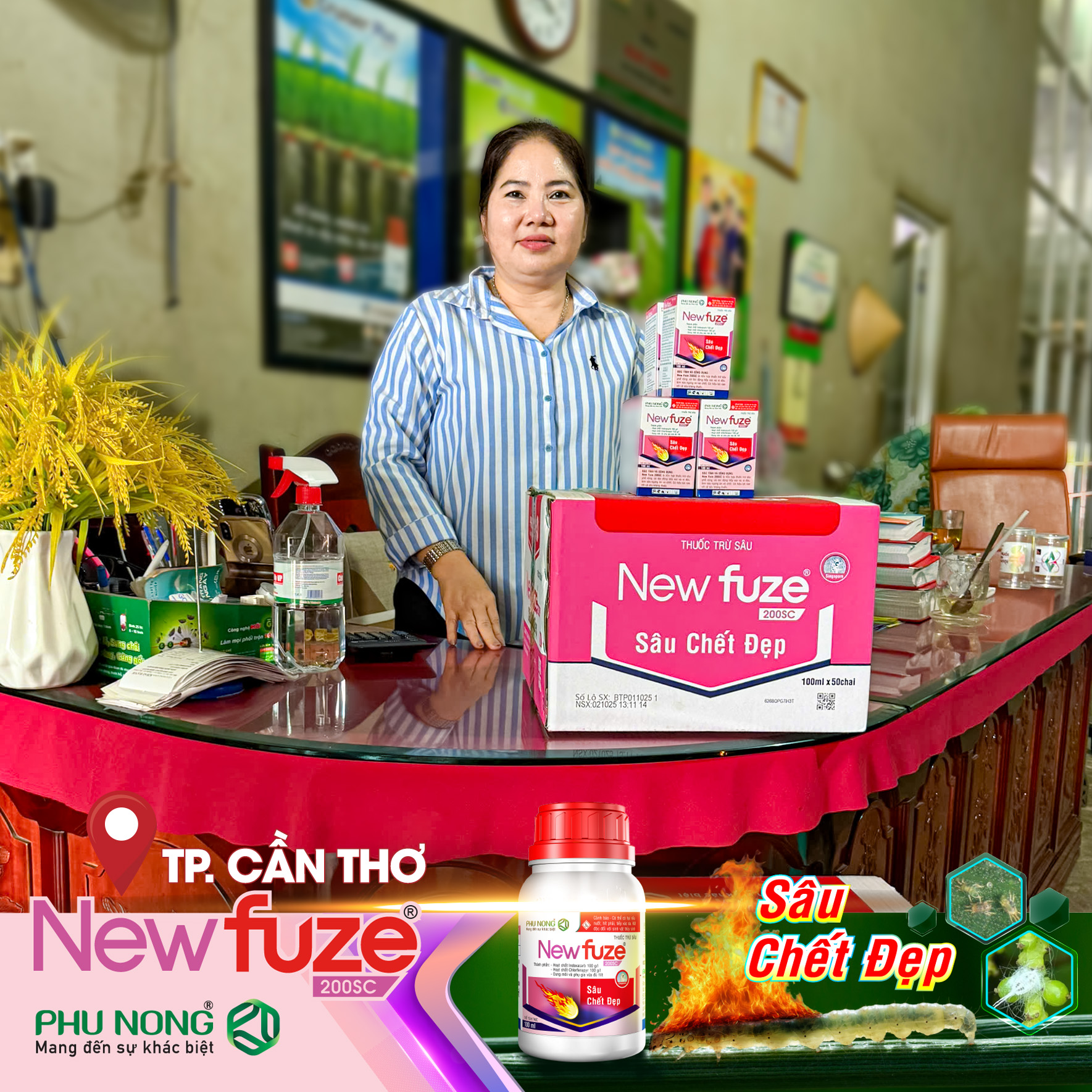 Nhằm mang đến cho bà con nông dân thêm một giải pháp bảo vệ mùa màng hiệu quả, Công ty TNHH Phú Nông chính thức ra mắt thuốc trừ sâu thế hệ mới Newfuze 200SC, sản phẩm đặc trị sâu cuốn lá, nhện gié và rệp sáp.