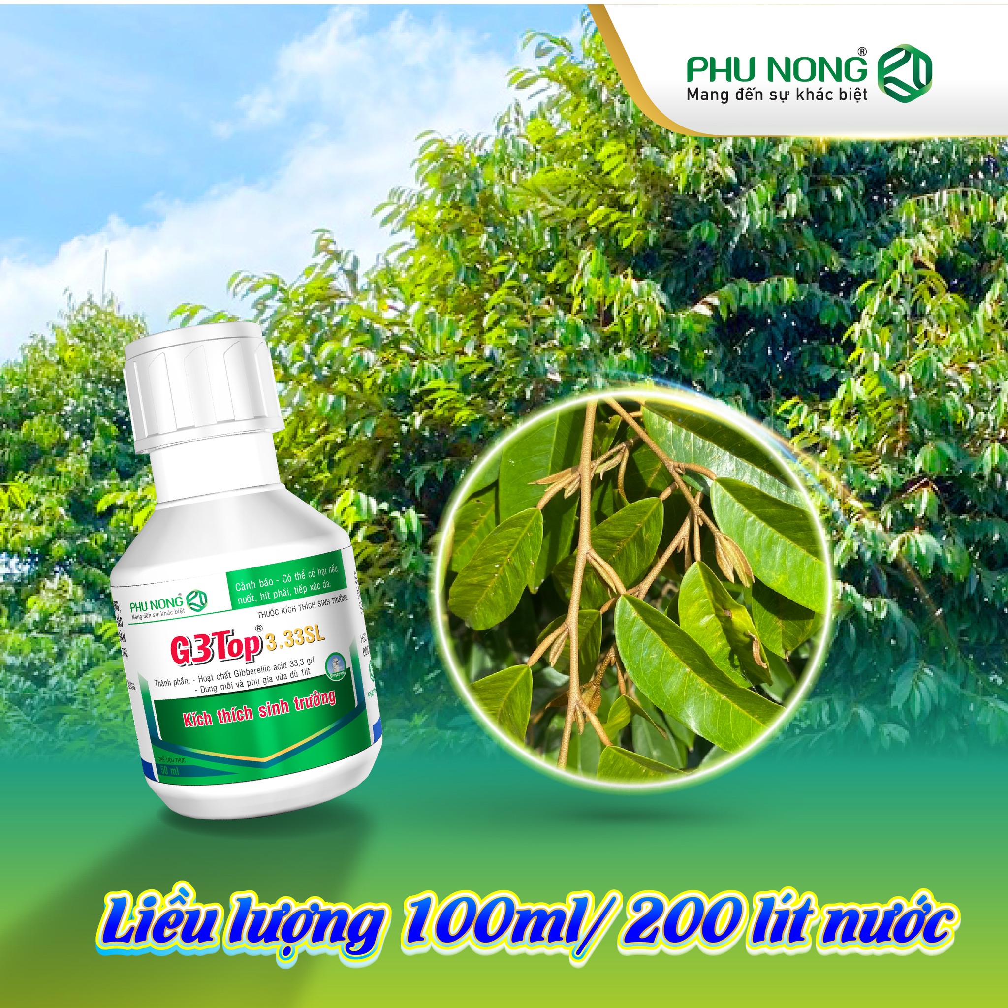 Ở các giai đoạn xử lý cho cây ra cơi đọt mới, quý bà con có thể phun bổ sung sản phẩm 𝐆𝟑𝐓𝐨𝐩 𝟑.𝟑𝟑𝐒𝐋 với liều lượng 100 ml/200 lít, để giúp cây tăng cường sinh trưởng, phát triển cơi đọt mới được nhanh chóng và tập trung.