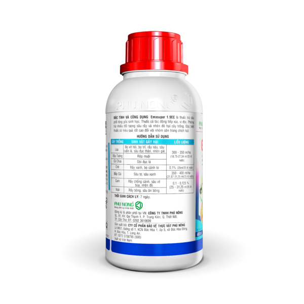 Emasuper 1.9EC là thuốc trừ sâu phổ rộng gốc sinh học. Thuốc có tác động tiếp xúc, vị độc. Phòng trừ nhiều đối tượng sâu rầy và nhện đỏ hại cây trồng. Đặc biệt thuốc có hiệu quả rất cao với nhóm côn trùng chích hút.