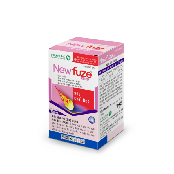 Newfuze 200SC là hỗn hợp thuốc trừ sâu phổ rộng, có tác động tiếp xúc và vị độc, làm sâu ngừng ăn và chết. Có hiệu lực cao với cả sâu kháng thuốc.