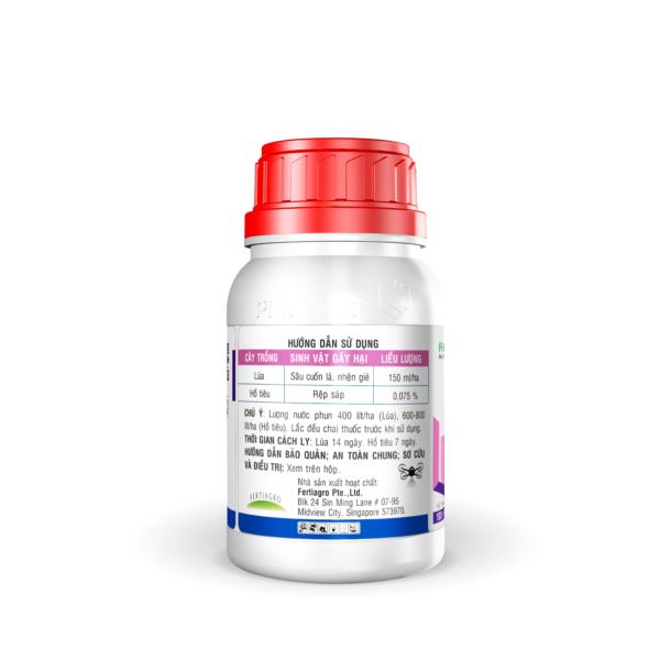 Lượng nước phun 400 lít/ha (Lúa), 600 – 800 lít/ha (Hồ tiêu). Lắc đều chai thuốc trước khi sử dụng.